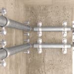Die fischer Schraubabstandsschelle Metall AM ist eine montagefreundliche Lösung zur Befestigung von Stahlpanzerrohren und Elektrokabeln. Die Metallschelle mit Gewinde kann mit dem fischer Nagelanker FNA II 6 x 30 M 6 x 41 und wahlweise mit den Stockschrauben STST 6 x 60 und STST 6 x 80 in Beton, Vollstein und Spannbeton-Hohlplatten befestigt werden. Mit dem fischer Nageldübel N 6 x 40 / 10 M 6 hält die Abstandsschelle sicher in Beton, aber auch in Vollstein, Mauerziegel und Leichtbeton.