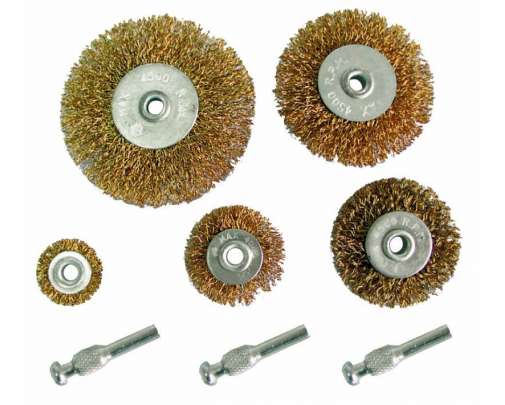 Žičane četke. Četke za diskove 25, 40, 50, 60, 75 mm. Žica presvučena mesingom. 3 igle uključene. Za korištenje s ravnom mlinom, bušilicom.