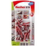 Der fischer DuoPower bietet sehr gute Haltewerte durch 2 Komponenten: Die graue Komponente aus hochwertigem Nylon aktiviert je nach Baustoff automatisch das optimale Funktionsprinzip (Spreizen, Klappen, Knoten) für besten Halt. Die Expansionsflügel der roten Komponente unterstützen die sichere Verspreizung und bieten zusätzliche Sicherheit zur grauen Komponente. Einfaches Eindrehen der Schraube und richtiges „Ziehen“ zum Schluss. Kein Überdrehen der Schraube. Der am Dübelkopf angeformten Rand verhindert, dass der Dübel ins Bohrloch rutscht.