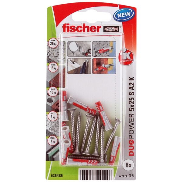 fischer DuoPower 5 x 25 S Schraube A2 nicht rostender Stahl