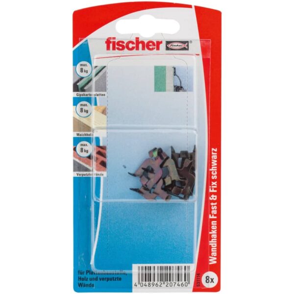 Der fischer Fast & Fix Wandhaken ermöglicht ein einfaches und schnelles Befestigen ohne Hammer und ohne Bohrer. In die Wand drücken – fertig. Geeignet für leichte Gegenstände, hinterlässt kaum Spuren beim Entfernen.