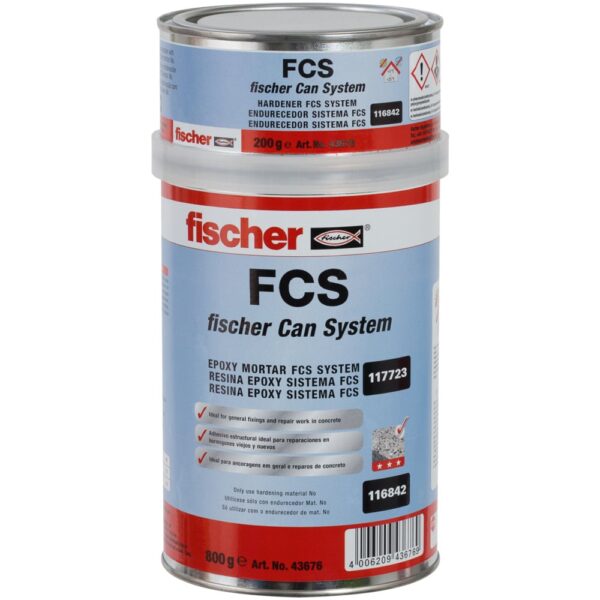 Das fischer Can System FCS ist ein Epoxidharzsystem in der Dose. Das System ist ideal, um Löcher und Spalten in Beton und betonähnlichen Oberflächen aufzufüllen oder abgeplatzte Ecken und Kanten zu rekonstruieren. Es hat eine hohe Verbundspannung und ein geringes Schwindmaß. Dies garantiert eine hohe Ausführungsqualität. FCS ist eine pastöse Masse für Anwendungen an Wänden und Decken, die mit der Spachtel aufgetragen wird. Die Variante FCS Liquid ist flüssig, lässt sich ideal mit dem Pinsel am Boden verarbeiten oder in Löcher und Spalten gießen.
