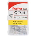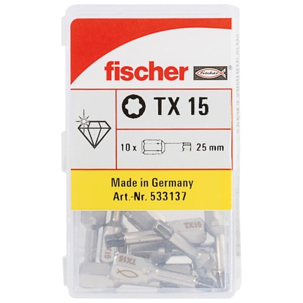 Der fischer DiamantBit FDB T ist ein extrem robuster und anwendungsfreundlicher Bit mit TX-Antrieb. Der Bit wird aus hochwertigem Chrom-Vanadium-Stahl hergestellt. Die spezielle Wärmebehandlung macht den Bit sehr widerstandsfähig. Die Nickelbeschichtung des gesamten Bits schützt zudem sehr lange gegen Korrosion.
