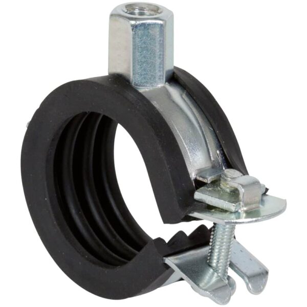 Die fischer Gelenkrohrschelle FGRS mit Schalldämmeinlage zum Befestigen von Rohrleitungen. Die Pendelschraube ermöglicht eine einfache Einhandmontage. Anschlussmutter mit Kombigewinde M8/M10 zur Aufnahme von Gewindestangen oder Stockschrauben.