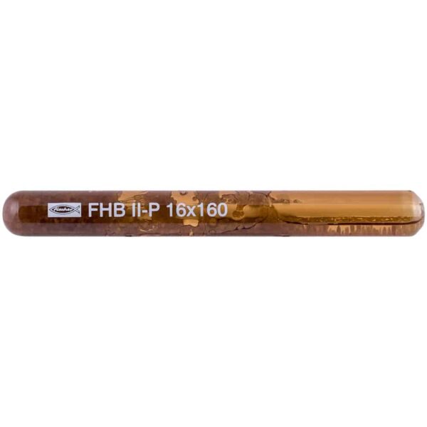 Die fischer Patrone FHB II-P ist eine Systemkomponente des fischer Highbond-Systems FHB II zur Befestigung in ungerissenem und gerissenem Beton. Die Mörtelpatrone enthält einen styrolfreien Vinylestermörtel. Die Mörtelpatrone kann mit den fischer Highbond-Ankerstangen FHB II-A S (Standard), Highbond-Ankerstangen FHB II-A L (lang) aus galvanisch verzinktem Stahl, aus nicht rostendem Stahl und aus hochkorrosionsbeständigem Stahl verwendet werden. Die fischer Highbond-Ankerstangen werden mit dem Setzwerkzeug RA-SDS mit einem Bohrhammer drehend-schlagend gesetzt. Beim Setzvorgang wird die Mörtelpatrone zerstört, durchmischt und aktiviert die Mörtelmasse. Beim Anziehen der Sechskantmutter werden die Konen der Ankerstange in die Mörtelschale gezogen, die sich gegen die Bohrlochwand verspannt. Mit dem fischer Highbond-System FHB II werden Fassaden, Maschinen und Stahlkonstruktionen im Innen- und Außenbereich sicher befestigt.