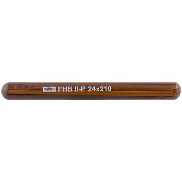 Die fischer Patrone FHB II-P ist eine Systemkomponente des fischer Highbond-Systems FHB II zur Befestigung in ungerissenem und gerissenem Beton. Die Mörtelpatrone enthält einen styrolfreien Vinylestermörtel. Die Mörtelpatrone kann mit den fischer Highbond-Ankerstangen FHB II-A S (Standard), Highbond-Ankerstangen FHB II-A L (lang) aus galvanisch verzinktem Stahl, aus nicht rostendem Stahl und aus hochkorrosionsbeständigem Stahl verwendet werden. Die fischer Highbond-Ankerstangen werden mit dem Setzwerkzeug RA-SDS mit einem Bohrhammer drehend-schlagend gesetzt. Beim Setzvorgang wird die Mörtelpatrone zerstört, durchmischt und aktiviert die Mörtelmasse. Beim Anziehen der Sechskantmutter werden die Konen der Ankerstange in die Mörtelschale gezogen, die sich gegen die Bohrlochwand verspannt. Mit dem fischer Highbond-System FHB II werden Fassaden, Maschinen und Stahlkonstruktionen im Innen- und Außenbereich sicher befestigt.