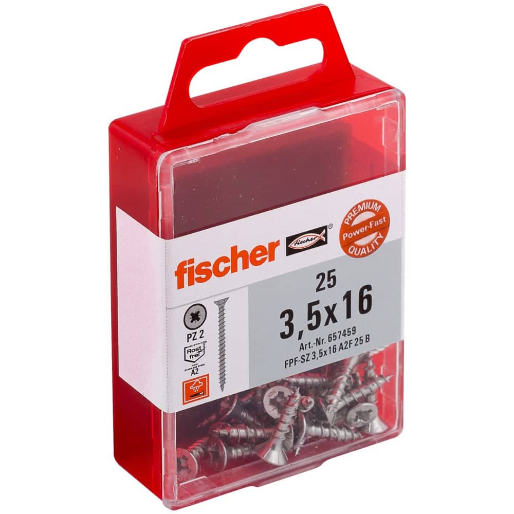 fischer Power-Fast 3,5 x 16 Senkkopf nicht rostender Stahl A2 Vollgewinde Kreuzschlitz PZ
