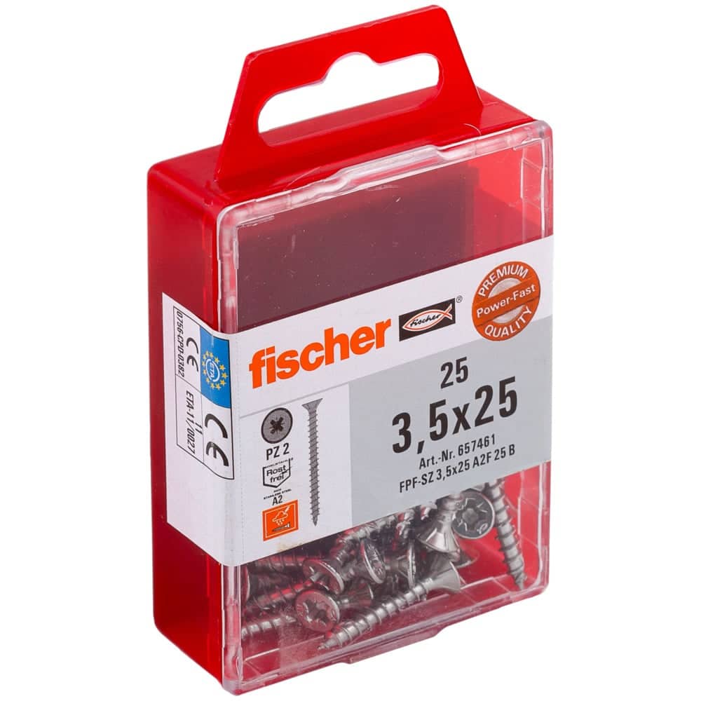 fischer Power-Fast 3,5 x 25 Senkkopf nicht rostender Stahl A2 Vollgewinde Kreuzschlitz PZ