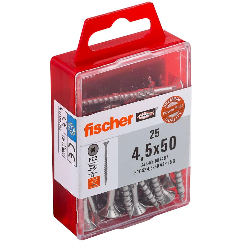fischer Power-Fast 4,5 x 50 Senkkopf nicht rostender Stahl A2 Teilgewinde Kreuzschlitz PZ
