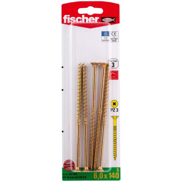 fischer Power-Fast 6,0 x 140 Senkkopf gelbverzinkt Teilgewinde Kreuzschlitz PZ