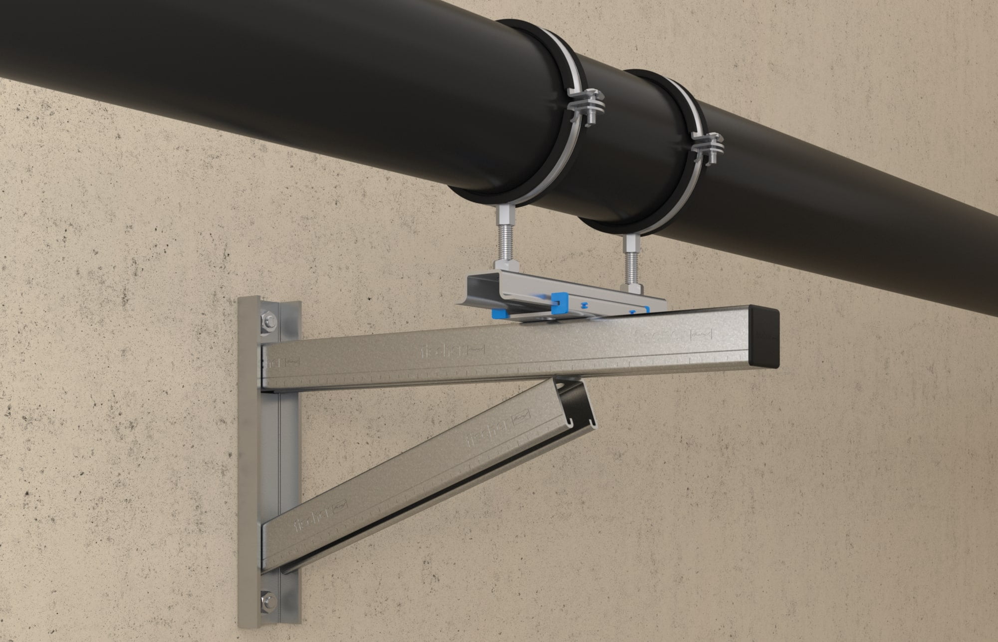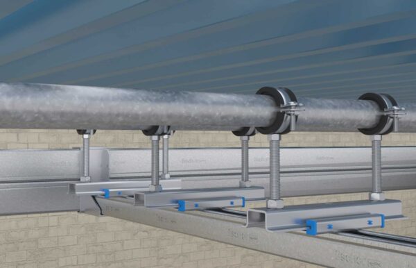 Das fischer Gleitelement mit einem maximalen Schiebeweg von 100 mm zur Aufnahme von axialen Längenänderungen von Rohrleitungen. Der große Schiebeweg des Gleitelements erlaubt die Aufnahme großer Ausdehnungen. Die Lochung des Schiebeschlittens erlaubt den Einsatz als einfaches oder zweifaches Gleitelement. Das Biegen der vier Laschen in der Grundplatte verhindert wirksam das Herausgleiten.