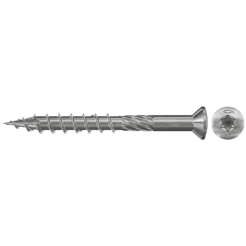Die fischer Power-Fast Terrassenschraube A2 FTS-ST A2P ist eine Schraube zur Befestigung von Terrassendielen auf Holzunterkonstruktionen. Die Schraube aus Edelstahl A2 mit Teilgewinde, flachem Senkkopf und Innenstern-Aufnahme kann bei einer großen Zahl von Terrassenhölzern verwendet werden. Beispielsweise Accoya, Bangkirai, Douglasie, Eiche, IPE, Itauba, Kapur, Lärche, Massaranduba und Robinie.