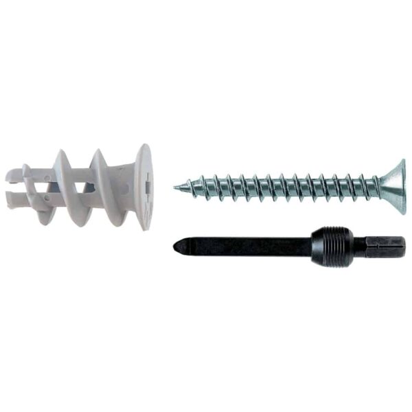 Der fischer Gipskartondübel GK S ist aus hochwertigem Nylon gefertigt. Der Dübel wird in der Vorsteckmontage mit dem beigefügten Setzwerkzeug mit einem Akku-Schrauber oberflächenbündig in Gipskartonplatten eingedreht. Bis 15 mm Plattenstärke ist kein Vorbohren notwendig. Der fischer GK S wird komplett mit Spanplattenschraube geliefert. Dadurch ist er geeignet, um Bilder, Leuchten und Elektroinstallationen sicher und schnell zu befestigen.