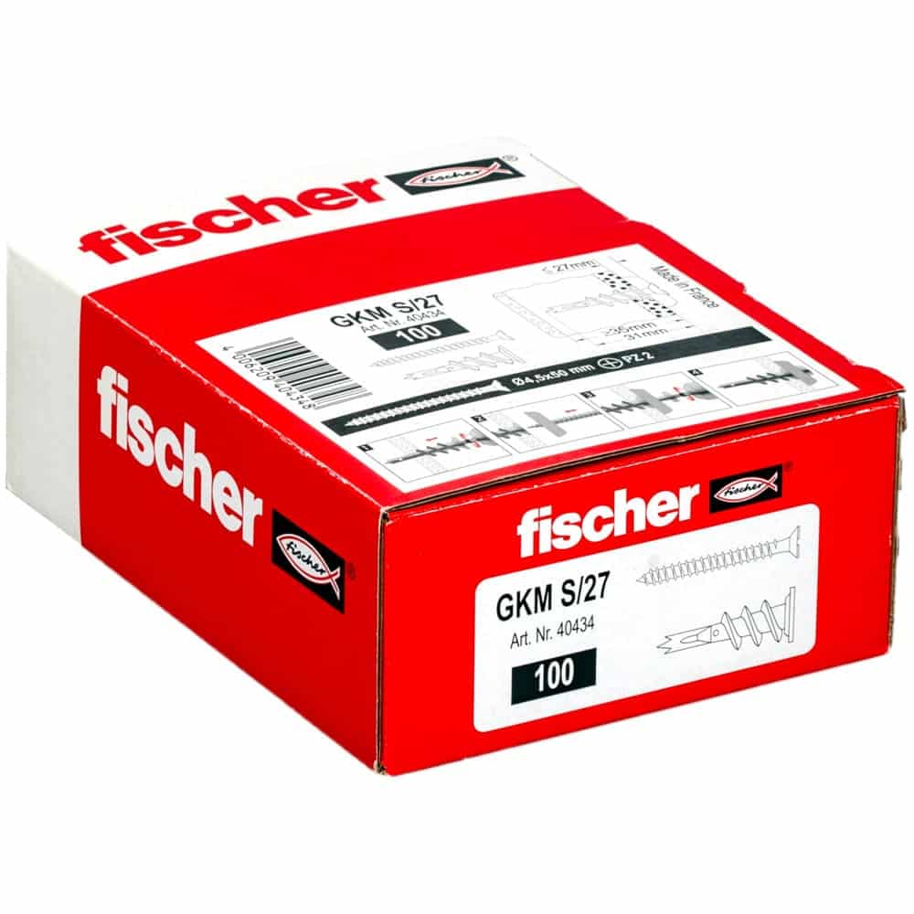 Der fischer Gipskartondübel GKM 27 ist aus Metall gefertigt. Der Dübel wird in der Vorsteckmontage mit einem Akku-Schrauber oder von Hand oberflächenbündig in Gipskartonplatten eingedreht. Bei einfach beplankten Gipskartonplatten ist kein Vorbohren notwendig. Bei Gipsfaserplatten und doppelt beplankten Gipskartonplatten mit Bohrer Ø 8 mm vorbohren.Der fischer GKM 27 wird komplett mit Spanplattenschraube Senkkopf geliefert. Dadurch ist er universell geeignet, um Leuchten, Elektroinstallationen und Einrichtungsaccessoires sicher und schnell zu befestigen.