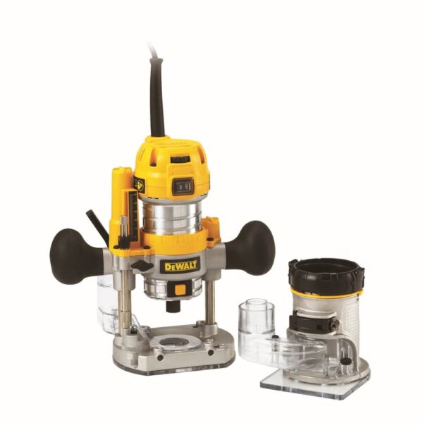 Glodalica DeWalt D26204K je glodalo i usmjeriva sa fiksnom bazom D26204K. Omogučuje potpuni elektronički nadzor brzine s povratnim informacijama i pruža, da se sačuva izabrana vrijednost brzine pri opterečenju u svim oblicima drva, aluminija i plastike. Ima promjenjivu postavku brzine za bolju optimizaciju rada. Kompaktan i lagan alat, jednostavan za upotrebu. Aluminijsko kučište motora se brzo pričvrsti na postolje. U opremi su 2 graničnika, 2 nastavka za odvajanje praha, 8 mm čahura, 17 mm ključ, potopno i fiksno postolje, stožac za mjerenje i robustan kovčeg za siguran transport. Karakteristike: – snaga: 900 W – brzina: 16.000/27000 okretaja/min – dubina reza: 55 mm – najveći promjer diska: 36 mm – prihvat alata: 6-8 mm – masa: 2,9 kg.