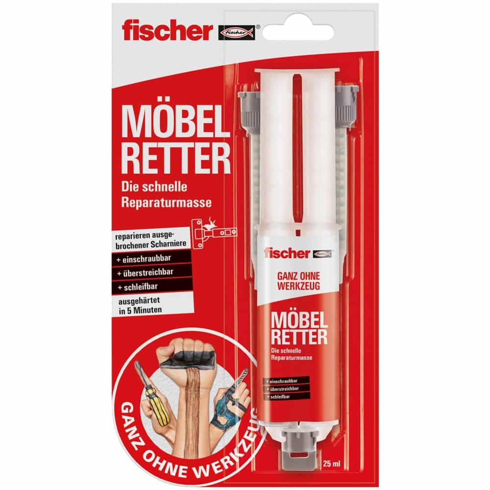 Scharniere reißen gerne mal aus und schwups, hängt die Tür schief. Gut, dass man das so einfach mit dem fischer MÖBELRETTER reparieren kann! Einfach das Loch mit dem MÖBELRETTER auffüllen. Der Kleber, fast wie flüssiges Holz, ist der Retter für alle Möbel im Haushalt. Durch seine Beständigkeit kann er flexibel zur Reparatur von Ihrem Schrank, Ihrer Schublade, oder dem Tisch eingesetzt werden. Durch die extreme Härte kann der Kleber problemlos geschliffen werden. Ist der Kleber ausgehärtet, kann man sogar wieder reinschrauben.
