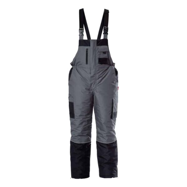 MATERIJAL: Vanjski: 100% poliester, pongee tip, 275 g / m2. Punilo: gustoća 160 g / m2. Podstava: tuft, 50 g / m2. Vodootporni tekstilni sloj prevučen PVC-om, jak i otporan na mehanička oštećenja. 7 džepova, uključujući jedan sa patentnim zatvaračem. Džep za mobilni telefon. Podešavanje širine pojasa gumenom trakom. Zatvarač prekriven Velcro materijalom. Reflektirajuće komponente i podesive trake. Podešavanje širine nogu na dnu zatvaračem. Standard: EN ISO 13688