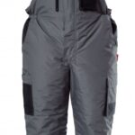 MATERIJAL: Vanjski: 100% poliester, pongee tip, 275 g / m2. Punilo: gustoća 160 g / m2. Podstava: tuft, 50 g / m2. Vodootporni tekstilni sloj prevučen PVC-om, jak i otporan na mehanička oštećenja. 7 džepova, uključujući jedan sa patentnim zatvaračem. Džep za mobilni telefon. Podešavanje širine pojasa gumenom trakom. Zatvarač prekriven Velcro materijalom. Reflektirajuće komponente i podesive trake. Podešavanje širine nogu na dnu zatvaračem. Standard: EN ISO 13688