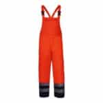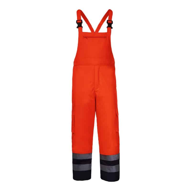 MATERIJAL: 100% poliester Oxford 300D, 180 g/m2 PU premaz. Podstava: 100% poliester, 160 g/m2. Podstava: 190T poliester, taft 54 ​​g/m2. Najviša ocjena vidljivosti: ocjena 3. Reflektirajuće trake prema EN ISO 20471. Vodonepropusni šavovi. Podešavanje širine struka s gumbima i vezicom. Podesive naramenice. 5 džepova NORMA: EN ISO 13688, EN ISO 20471.