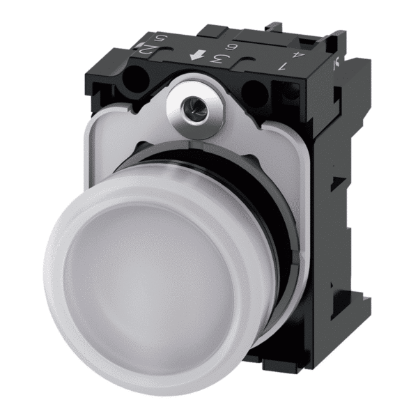 Socom | Industrija | Upravljački uređaji za dojavu i signalizaciju | Signalne svjetiljke | Indikator, svjetlosni, 22 mm, okrugli, plastični, bijeli, sa lećom, glatki, 230V AC