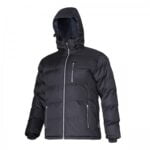 MATERIJAL: Vanjska obloga: 100% poliester tip rip-stop, 200 g / m2. Punilo: 450 g / kom. Podstava: taft, 60 g / m2. Vodootporni tekstilni sloj, presvučen PVC-om, izuzetno je jak i otporan na mehanička oštećenja. 5 džepova (3 vanjska s patentnim zatvaračem i 2 unutarnja, uključujući 1 mrežicu). Džep za mobitel / novčanik. Podesiva kapuljača u dubinu i širinu, pričvršćena patentnim zatvaračem. Patentni zatvarač na jakni. Fleksibilne unutarnje manšete koje štite od vjetra I hladnoće. Podesite širinu na dnu jakne posebnom vrpcom. Standard: EN ISO 13688