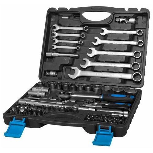 Set nasadnih ključeva 1/2″ i 1/4″ i plosnatih ključeva 4-32mm Mega sa simbolom 58082 izrađeni su od visokokvalitetnog čelika. Preporuča se za obične DIY entuzijaste kao i za male radionice. Set uključuje 82 elementa, koji se isporučuju u čvrstoj transportnoj kutiji s ručkom. Unutar kovčega ćete pronaći cijeli paket DIY alata: šesterokutne nastavke, kombinirane ključeve (sve najpopularnije veličine), nastavke, nastavke, čepove za svijeće, fleksibilni nastavak i ručku s čegrtaljkom s čegrtaljkom – 24 zuba. Komplet uključuje sljedeće stavke: šesterokutne nastavke (šesterokutne) 1/4″: 4, 4,5, 5, 5,5, 6, 7, 8, 9, 10, 11, 12, 13, 14 mm 1/4″ utičnice sa vrhovima: PH 1, 2; PZ 1, 2; HEX 3, 4, 5, 6; Torx T8, T10, T15, T20, T25, T30 1/4 inča krajevi: ravni 8, 10, 12; PH 3,4; PZ 3.4; Torx: T40, T45, T50, T55; HEX 8, 10, 12, 14 kombinirani ključevi: 8, 10, 11, 12, 13, 14, 17, 19, 22 mm 1/4″ drška s čegrtaljkom, 24 zuba 1/4″ produžetak: 50, 100 mm 1/4″ univerzalni zglob 1/4″ klizna ručka 1/4 “savijeni nastavak 1/4 “adapter za 5/16″ bitove 1/4″ odvijač šesterokutne nastavke (šesterokutne) 1/2″: 14, 15, 16, 17, 18, 19, 20, 21, 22, 24, 27, 30, 32 mm 1/2″ drška s čegrtaljkom, 24 zuba 1/2″ produžetak: 125, 250 mm 1/2″ grla za svijeće: 16, 21 mm kardanski zglob 1/2″ 1/2” klizna ručka