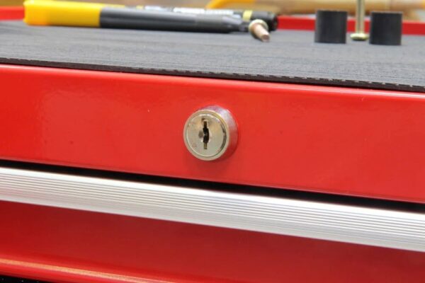 Alat PROLINE je alat s karakterom. Marku PROLINE stvorili su iskusni stručnjaci za ručne alate. Ponuđeni proizvodi namijenjeni su svim kupcima (profesionalcima i kućnim radnicima). Alati PROLINE čine posao brzim i lakim. Kolica s alatom imaju 5 ladica i 193 komada različitih alata. Dimenzije kolica su 688 x 458 x 735mm. Ima središnju bravu s dva ključa za lakše otključavanje i zaključavanje. Kolica također imaju kotače s kočnicama i ležajevima. Prve tri ladice imaju nosivost 25 kg. Stražnja ladica ima nosivost od 45 kg, koja je prilično široka i duboka, što omogućava skladištenje većeg broja alata i pribora potrebnih za vaš rad. Kolica također imaju veliki prostor za odlaganje na vrhu i bočnu ručku za jednostavno rukovanje. Sadrži: Set šiljastih kliješta 4kom (58763) Garnitura nasadnih ključeva s čegrtaljkom 1/4 “27kom (58765) Set utičnica s čegrtaljkom 1/2 “20kom (58724) Čekić set 8kom (58727) Set kliješta 5kom (58729) Kombinirani odvijači 8kom (58731) Kombinirane tipke 12kom (58783) Set prstenastih ključeva 12kom (58779) Set utičnica 19kom (58787) Garnitura nasadnih ključeva s čegrtaljkom 1/2 “52kom (58795) Set od 12 komada (58797) Značajke: 5 ladica Vodiči ladica Kotači s ležajevima Središnja brava Kočnica na kotačima
