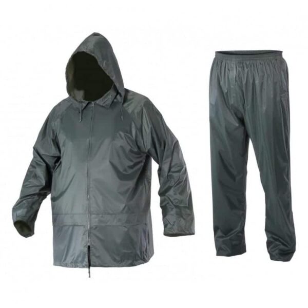 MATERIJAL: PVC, poliester Jakne: vodonepropusni šavovi. Ventilacijski otvori ispod ruku i na leđima poboljšavaju cirkulaciju zraka. Vodootporna, podesiva kapuljača, skrivena u ovratniku s patentnim zatvaračem. Manžete su završene unutarnjim elastičnim trakom koji pruža zaštitu od vjetra i vode. Podesite širinu dna jakne remenom. 2 vanjska džepa. Hlače: vodonepropusni šavovi. Podesivi pojas Širina hlača podesiva. STANDARD: EN ISO 13688
