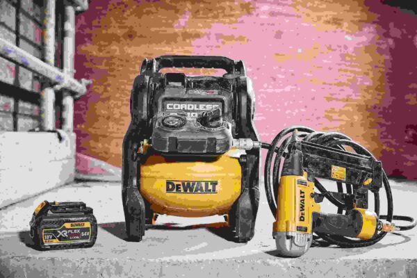 Dewalt 54V FlexVolt kompresor predstavlja se kao prvo svjetsko bežično pneumatsko rješenje. 54 ili 18 V Flexvolt baterija je dovoljno snažna za kompresor od 10 litara, ali je i jednostavna za nošenje i iznimno mala. S jakim i izdržljivim okovim također je jednostavan prijenos. – z ovim kompresorom možete pucati 1220 čavala jednim punjenjem – snažna oprema i dizajn olakšavaju prijenos – 54V motor bez četkice bez ulja – jedan regulator za jednostavnu uporabu – 10l rezervoar – napon: 54V – snaga: 0.4HP – maks. tlak: 9,3 bara – veličina spremnika: 10l – buka: 78.5dBA – težina: 9,75 kg Kompresor je bez baterije.