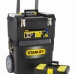 -dvoetažni spremnik na kotačima Stanley sa sklopivom ručkom -pričvršćene metalne kopče mogu se zaključati bravom -spremnik ima 2 odvojena dijela; sadrži pladanj za male predmete i dvije ladice na poklopcu -dimenzija: 47 x 62 x 30 cm