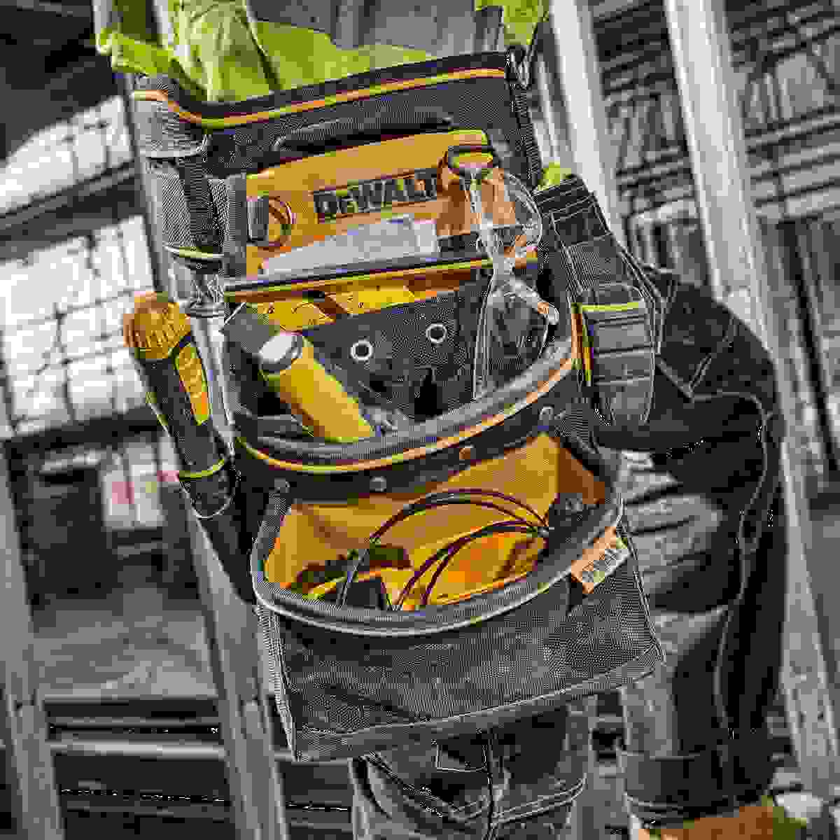 DeWalt višenamjenska torba za alat Oprema: – Džepovi i kuke osiguravaju izvrsnu organizaciju alata – veliki džep s patentnim zatvaračem – prostor za sigurno skladištenje pile za rezanje rupa – metalna kopča