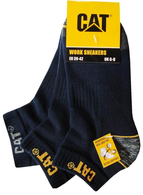 CAT muške radne niske čarape s pojačanim radom na prstima i peti. U paketu su 3 para. Plava boja.