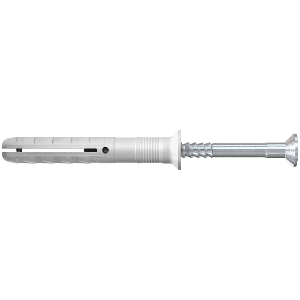 • Einfache und sichere Montage: Integrierte Einschlagsperre verhindert ein vorzeitiges Aufspreizen des Dübels.