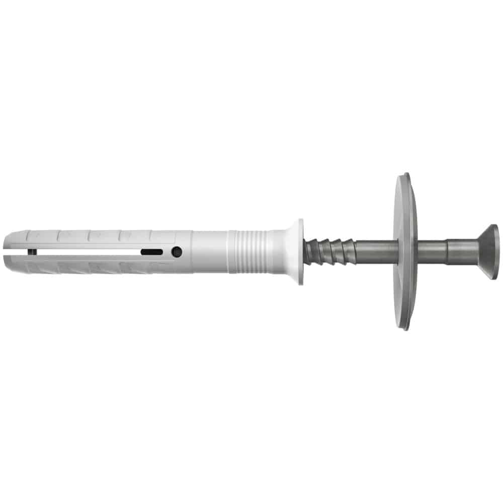 • Einfache und sichere Montage: Integrierte Einschlagsperre verhindert ein vorzeitiges Aufspreizen des Dübels.