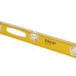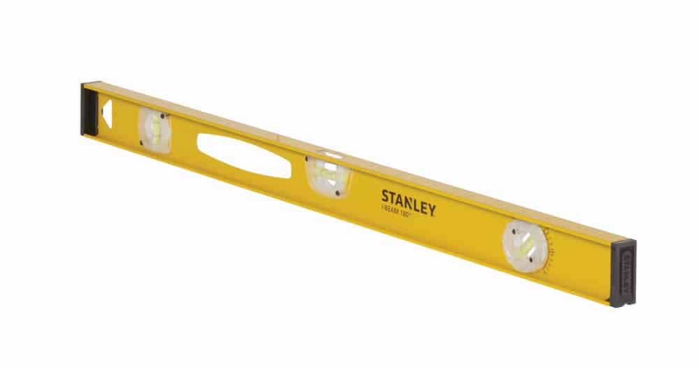 Stanley libela PRO 180 800 mm – Dugotrajno aluminijsko tijelo “I” profila za čvrstoću i dugotrajnost – 3 cjevaste fiole: 1 vodoravna fiola na vrhu, 1 okomita i 1 kutna, za 180 stupnjeva okretna fiola (dvostruka ljestvica; od 0 stupnja do 90 stupnja i 10 stupnjeva diferenca) – Bočne ublaživači za libelu, ukoliko vam padne – Točnost: +/- 1,5 mm/m