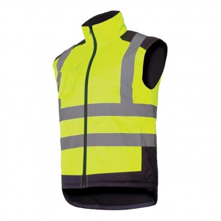 Materijal: Premaz: 100% Oxford poliester 300D 180 g/m2 s poliuretanskim (PU) premazom. Podstava: 100% poliester 160 g/m2. Podstava: flis 100% poliester 220 g/m2. Reflektirajuće trake u skladu s EN ISO 20471. Vodonepropusni šavovi. 6 džepova, uključujući 5 sa patentnim zatvaračem (3 vanjska i 2 unutarnja). Podešavanje širine donjeg dijela prsluka posebnom vezicom. NORMA: EN ISO 13688, EN ISO 20471.
