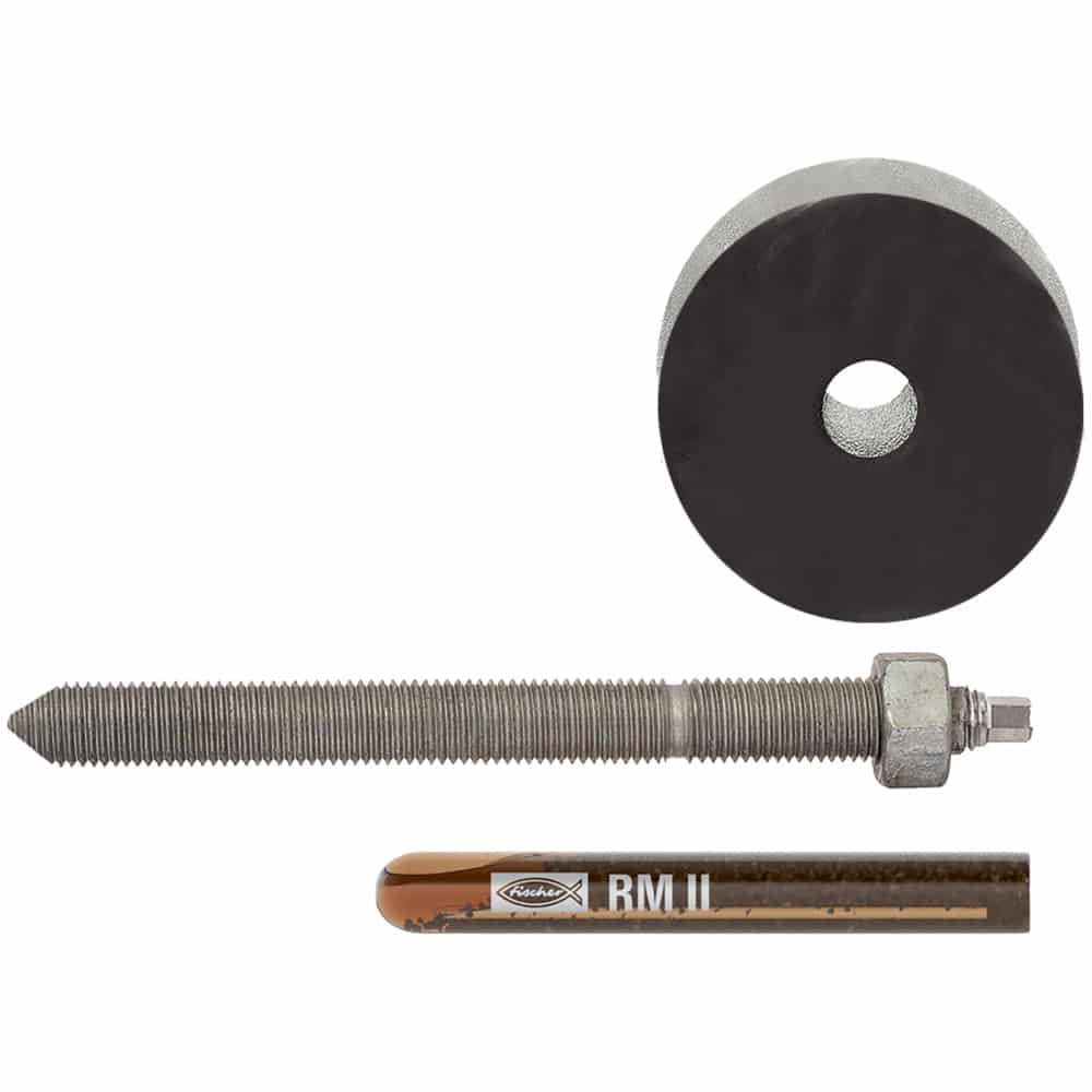 Ankerstange RG M 16 x 180 8.8 fvz., Mörtelpatrone RM II 16; runde Scheibe fvz. 80 x 18 x 4 mm; runde Dichtscheibe 76x18x2 mm; 6kant Mutter M 16 fvz.