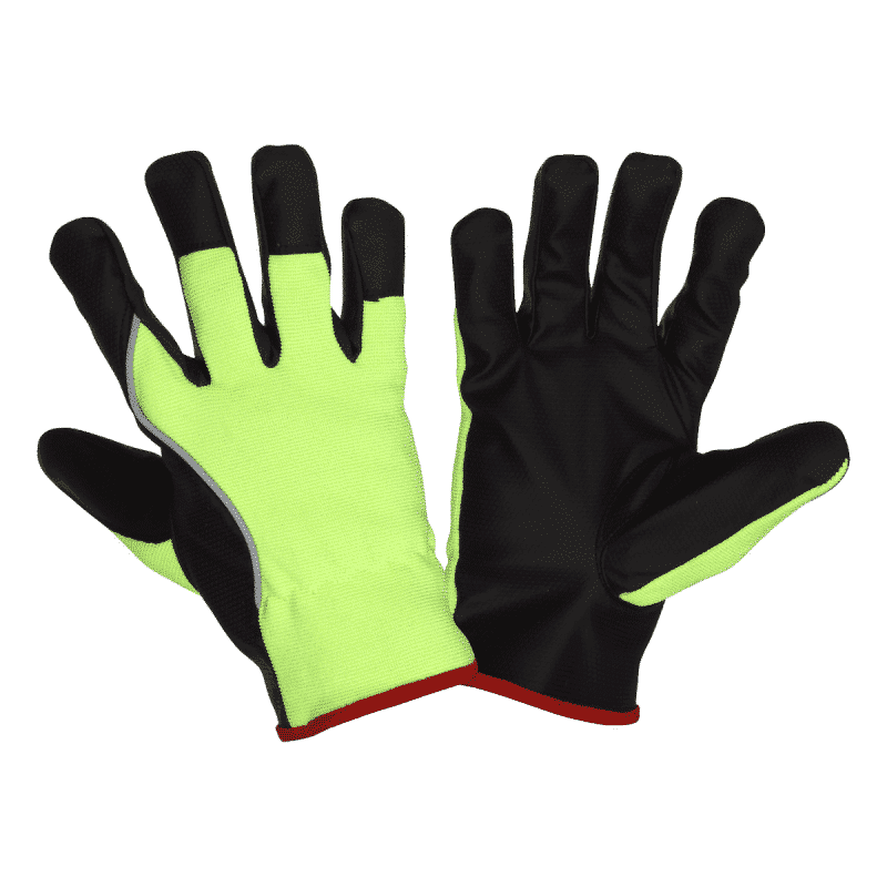 Materijal: poliuretan, elastan, poliester. Jednodijelni kontaktni dio povećava trajnost rukavica. Vanjska površina rukavica, izrađena od fleksibilnog materijala s visokom vidljivošću, osigurava savršeno prianjanje ruci. Reflektirajuća komponenta duž pokazivača poboljšava vidljivost korisnika. Podstava od flisa štiti korisnika od hladnoće i pruža veću udobnost pri radu. Manžeta za zapešće pruža visoku udobnost pri radu. STANDARD: EN 420