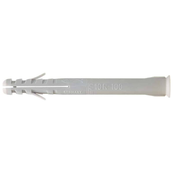 Der fischer Dübel S 12 R ist ein Spezialdübel zur Aufnahme der fischer Universal-Ösenschraube GS. Der aus hochwertigem Nylon hergestellte Spreizdübel wird in der zeitsparenden Durchsteckmontage gesetzt. Die Spreizflügel verhindern ein Mitdrehen und erleichtern die Montage. Beim Eindrehen der Universal-Ösenschraube verspreizen die zwei Spreizzonen und verankern sicher im Baustoff. Bei Montage in Randnähe den Dübel so drehen, dass die Spreizkraft parallel zum Rand wirkt.