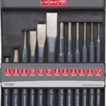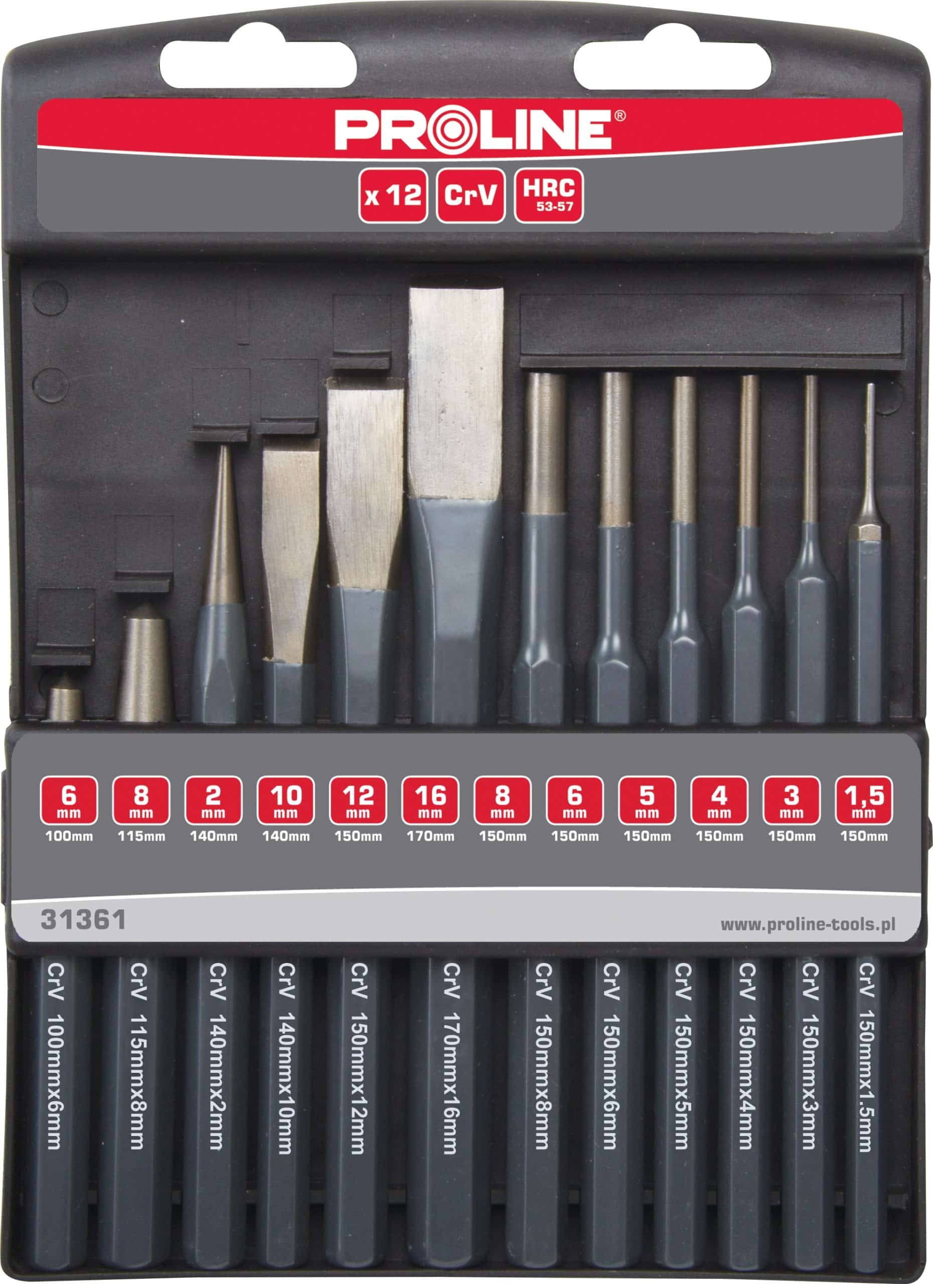 Dlijeto i šile u plastičnim organizatorima alata Set sadrži: – točka: 100x6mm, 115x8mm – točka okretanja: 140x2mm – dlijeto: 140x10mm, 150x12mm, 170x16mm – paralelni kotač: 150×8 mm, 150×6 mm, 150×5 mm, 150×4 mm, 150×3 mm, 150×1,5 mm