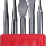 Opis: Krom Plastični organizator alata Set sadrži: – središnji hod 120 mm x 4 mm – stožasti luk 120 mm x 3 mm – Zvjezdano dlijeto 130 mm x 5 mm – Ravno dlijeto 130 mm x 12 mm – Paralelni potezi 150 mm x 4 mm