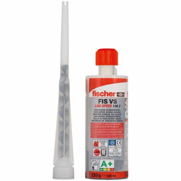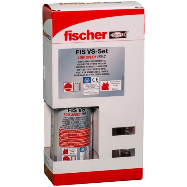 Das fischer Montagemörtel 150 C Set ist ein 2K-Injektionssystem auf Vinylesterbasis. Harz und Härter werden erst beim Auspressen aus dem Statikmischer vermischt und aktiviert. Das praktische Set beinhaltet Kunststoff Injektions-Ankerhülsen. Der Montagemörtel lässt sich besonders wirtschaftlich mit einer handelsüblichen Dichtstoff-Auspresspistole verarbeiten. Angebrochene Kartuschen können mit einem neuen Statikmischer wieder verwendet werden. Das Hybrid-System bietet mit zugelassenen Systemkomponenten wie Ankerstangen FIS A, Innengewindeankern und Injektions-Ankerhülsen für Befestigungen in Beton und Mauerwerk viele Anwendungsmöglichkeiten im Innen- und Außenbereich.