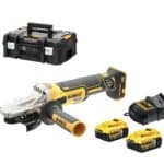 SET UKLJUČUJE: DCG405FN AKU KUTNA BRUSILICA 18V XR IZDUŽENI VRAT – brzina: 9000 okretaja/min – promjer diska: 125 mm – prihvat: M14 – težina: 1.8kg SET DVIJE BATERIJE 18V 5,0Ah I PUNJAČ DCB115 DWST1-70703 KOFER ZA ALAT TSTAK II