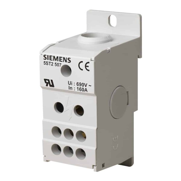 Razvodni blok 1-polni, 160 A, 690V Ulaz: 1x 10-70 mm2 Izlaz: 6x 2,5-16 mm2 za ugradnju na standardnu montažnu šinu