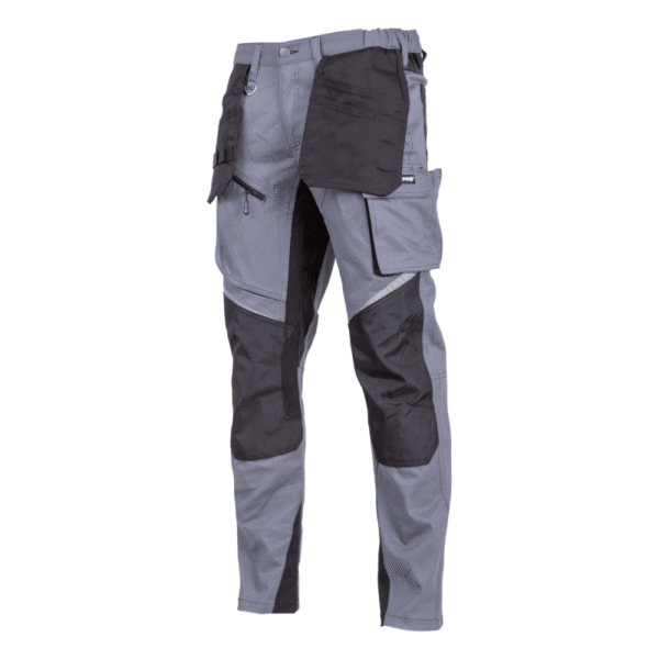 MATERIJAL: 98% pamuk, 2% elastin. 13 džepova, 1 sa patentnim zatvaračem. Elastan pruža elastičnost i ugodno korištenje. Dvostruki šavovi. Reflektirajući elementi za poboljšanje sigurnosti na radu. Petlje za pojas. Džepovi za zaštitu koljena ojačani materijalom otpornim na branje (poliester 600D). Uski kroj. Moderan i zanimljiv dizajn. STANDARD: EN ISO 13688
