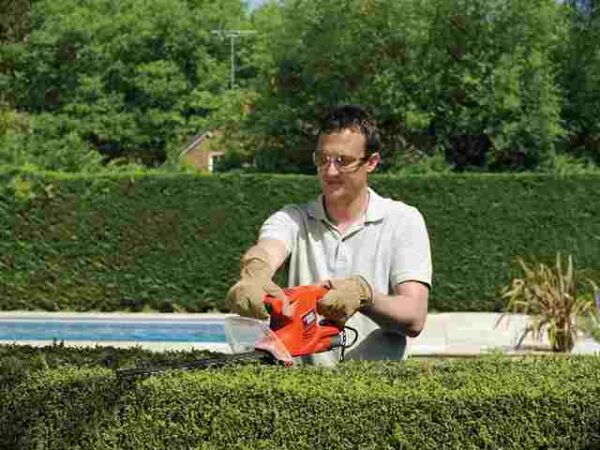 Škare za živicu Black + DeckerTM GT4245 s T-ručkom su pravi izbor za udobano i sigurano ukrašavanje Vaše živice. 45 cm oštrica škara su pogodni i za manje živice. Zbog dvoručnog prekidača sigurnosti i kočnice lopatice imaju visoku razinu sigurnosti. Sigurnost kočnice je zaustaviti nož u manje od 1 sekunde. Škare su izdržljive, robustne i imaju oštre metalne oštrice. U isporuci dolazi i štitnik za zaštitu oštrice alata. Tehnički podaci: – snaga: 420 W – dužina reza: 45 cm – razmak između zubi: 16 mm – br. pomaka u slobodnom hodu: 1.960/min – brzina zaustavljanja kočnicom: 1,0 s – težina: 2,1 kg