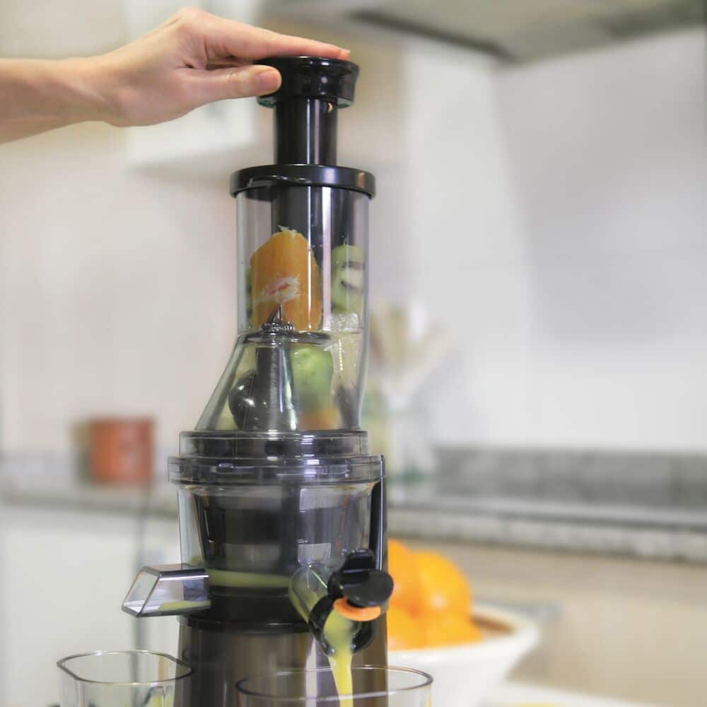 – Promjer ulazne cijevi za dodavanje ploda 62 mm. – Visokokvalitetno, potpuno kućište, nehrđajući čelik, filter i noževi – nehrđajući čelik protiv otiska prsta. – sigurnosni sustav zaključavanja za dodatnu zaštitu. – sef za pranje posuđa, s lako odvojivim dijelovima – dvije brzine s kontrolom isključivanja – 1,2L ostatak posude i 0,55L vrč za sok – Gumeni pod za veću stabilnost. snaga: 200W brzina: 2 -filter: nehrđajući čelik – napon: 240V