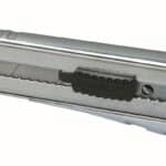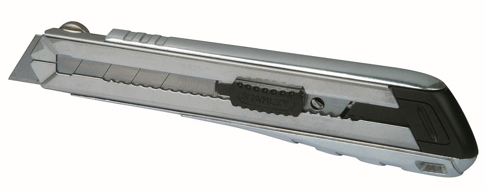 Fatmax nož sa odlomljivom oštricom – Oštrica širine 25 mm je učinkovito i kod najzahtjevnijih poslova – Čelična vodilica – Zamjena oštrice je brza i jednostavna, ne zahtjeva nikakav alat – Kartuša od nehrđajučeg čelika drži 4 oštrice – Kućište od lijevanog aluminija za veću tvrdoću i izdržljivost – Gumb za blokadu sadrži također najtrđe materijale – 210 x 25 mm