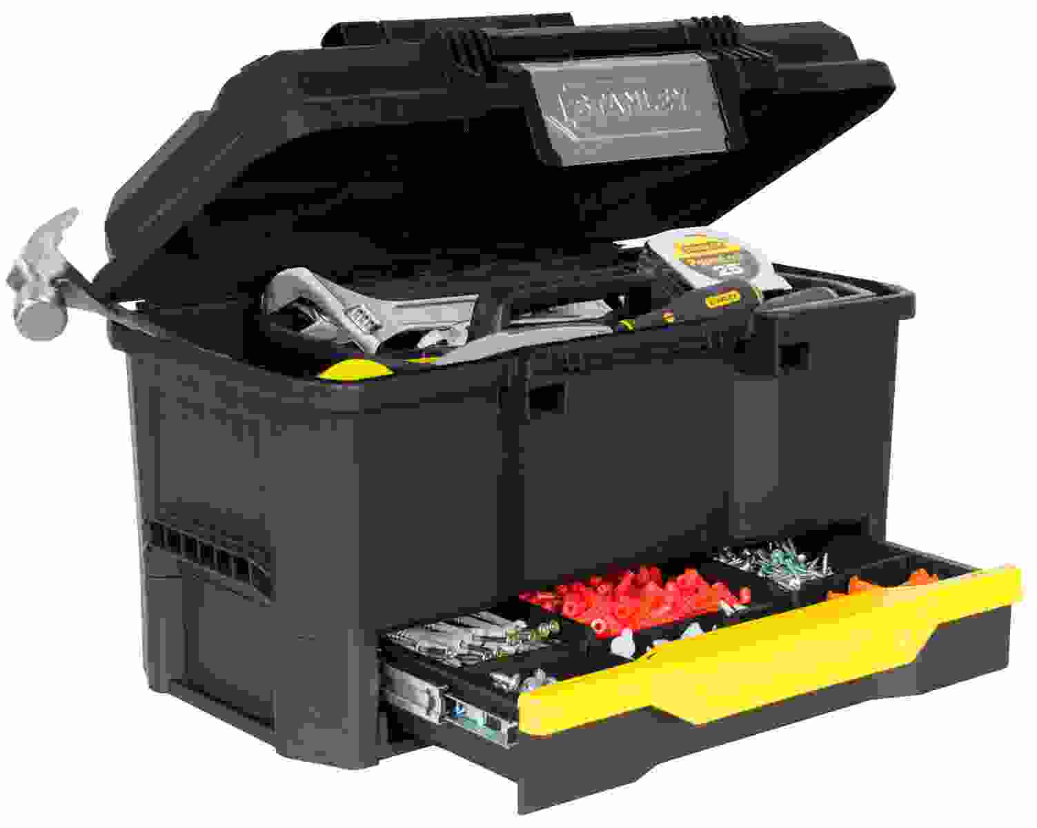 48,26cm/ 19 kutija za alat sa bravom otvorivom sa smo jednom rukom omogućava otvaranje kada je druga ruka zauzeta. Ladica sa klizećim kuglagerima: prilagodljiva za organizaciju alata i manjih dijelova raznih veličina. Izdržljiv oblik za veliku snagu i trajnost. Jako široka mekana ručka na vrhu za lako dizanje. 2/3 prenosiva ladica daje dovoljno prostora ispod za pohranu velikog alata. V-Utori na poklopcu za rezanje potrebno na licu mjestu. Ugradžen sistem za zaključavanje za sigurnost alata i ostalog pribora