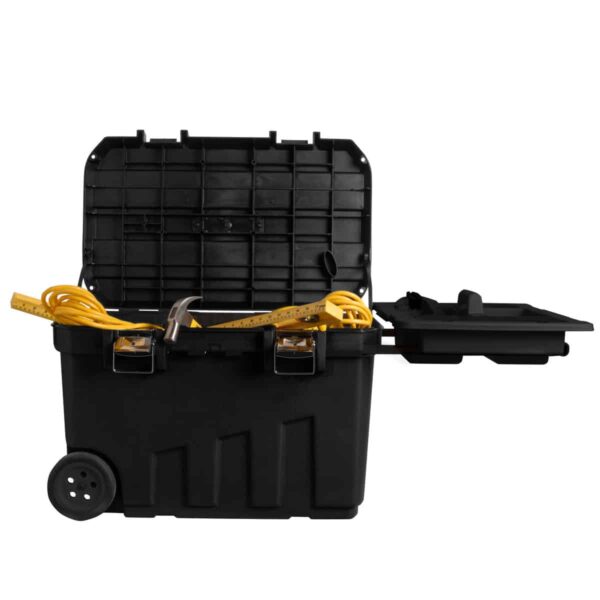 Široka teleskopska čelična ručka sa mekanim držačem, pogodna za rad u rukavicama. Kapacitet 91 l Izdržljivi kotači testirani na cesti, Leptir vijci na gornjem poklopcu za koji se može pričvrstiti libela, ručna pila ili neki drugi pribor. Izuzetno velike nehrdžajuće metalne brave, izdržljive i dugotrajne sa dijelom za lokot za maksimalnu sigurnost. Maksimalno za pohranu i transport većeg alata, osnovne opreme i radnog materijala. Alat nije uključen